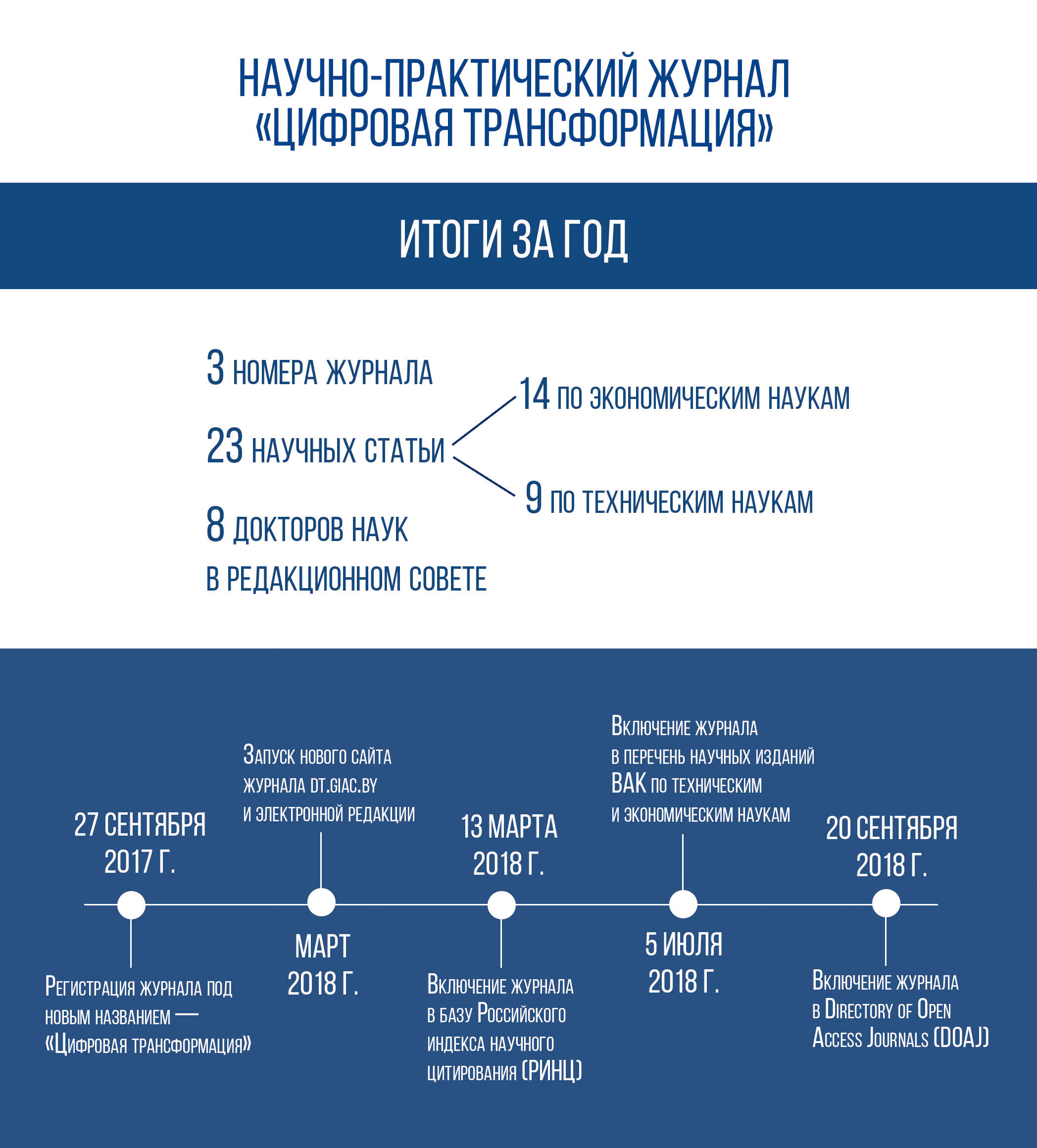 У часопісе публікуюцца артыкулы ў галіне тэхнічных і эканамічных навук. Выданне прысвечана аналізу працэсаў лічбавай трансфармацыі эканомікі і, у прыватнасці, сістэмы адукацыі. «Лічбавая трансфармацыя» задавальняе аб'ектыўную патрэбнасць у актуальнай інфармацыі па пытаннях ўкаранення і выкарыстання сучасных інфармацыйных тэхналогій ў адукацыі, эканоміцы, дзяржаўным кіраванні, прамысловасці і іншых сферах грамадскага жыцця. Мэтавая аўдыторыя часопіса – беларускія і замежныя даследчыкі (у т. л. дактаранты, аспіранты), работнікі сферы адукацыі і IT-спецыялісты, прадстаўнікі органаў дзяржаўнага кіравання. Тэрыторыя распаўсюджвання – Рэспубліка Беларусь і краіны СНД. Часопіс выходзіць штоквартальна. Загадам ВАК Рэспублікі Беларусь часопіс «Лічбавая трансфармацыя» уключаны ў пералік навуковых выданняў Рэспублікі Беларусь для апублікавання вынікаў дысертацыйных даследаванняў. Таксама выданне ўваходзіць у такія навуковыя базы дадзеных, як РIНЦ, Google Scholar, DOAJ, Ulrich's Periodicals Directory.